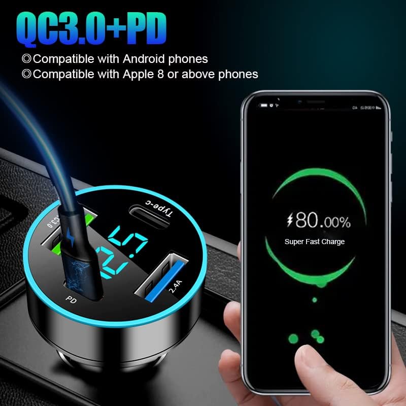 120W for iPhone 17 Pro Car Charger USB C, 4-Port Car Charger Fast Charging, PD&QC3.0 Type C Car Phone Charger, Cigarette Lighter Adapter, Car Accessories for iPhone 16 16e 15 17 Air Pro Max, Samsung