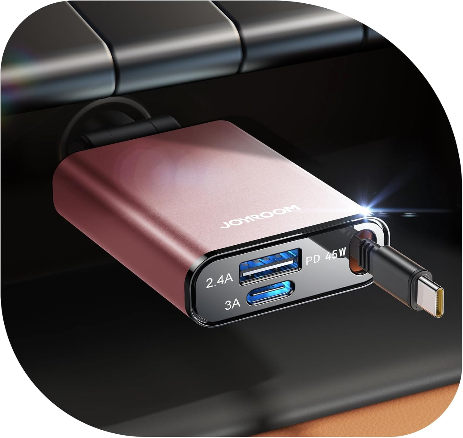 JOYROOM 3 in 1 retractable car charger, one of the top car accessories, is crafted with a robust aluminum alloy casing. Premium car charger exterior not only makes the interior of your car more luxurious, but also enhances safe driving.