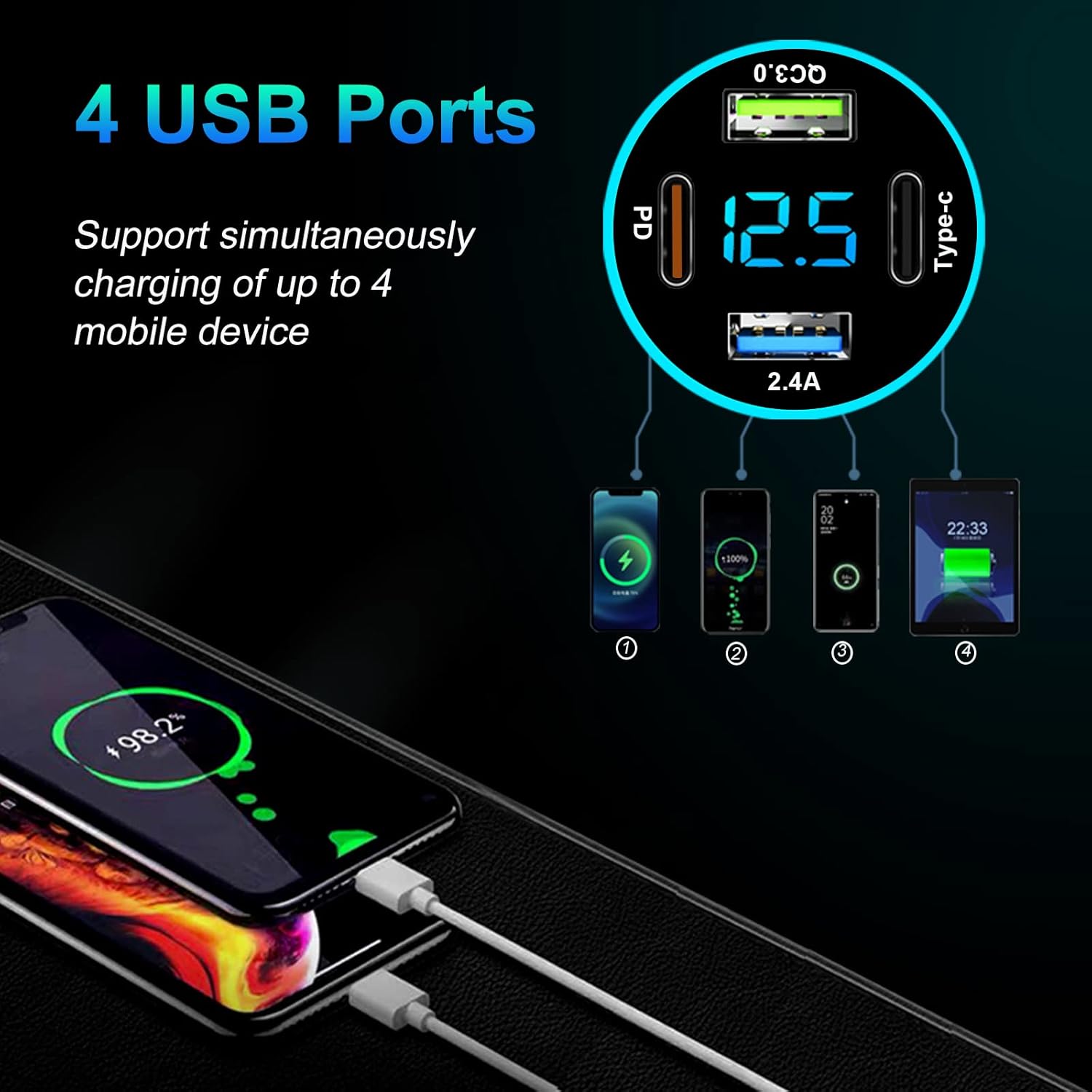 120W Super Fast Charging 4 Devices Simultaneously
