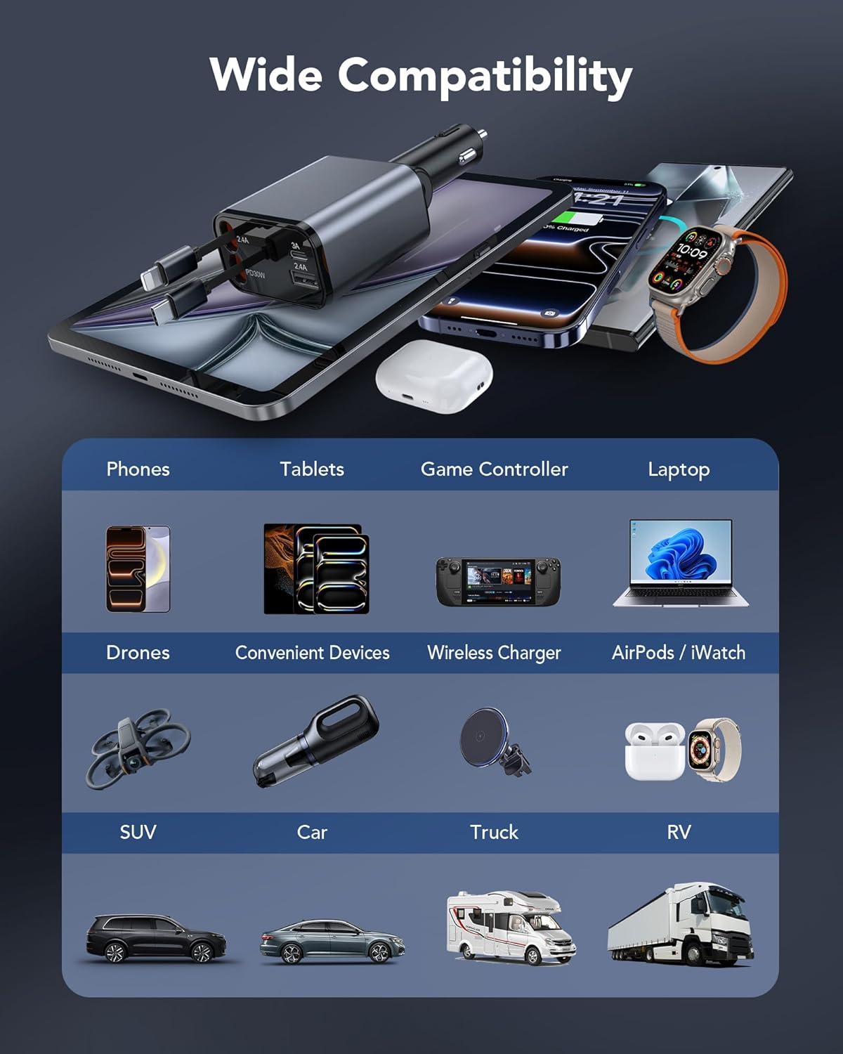 We are professional and care about the actual needs of every truck driver, which is why we offer you a 2025 new upgrade compact retractable car charger.