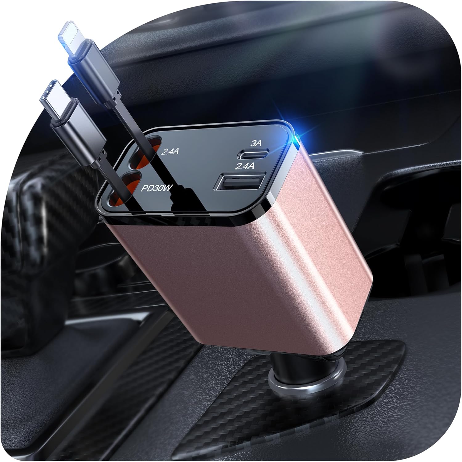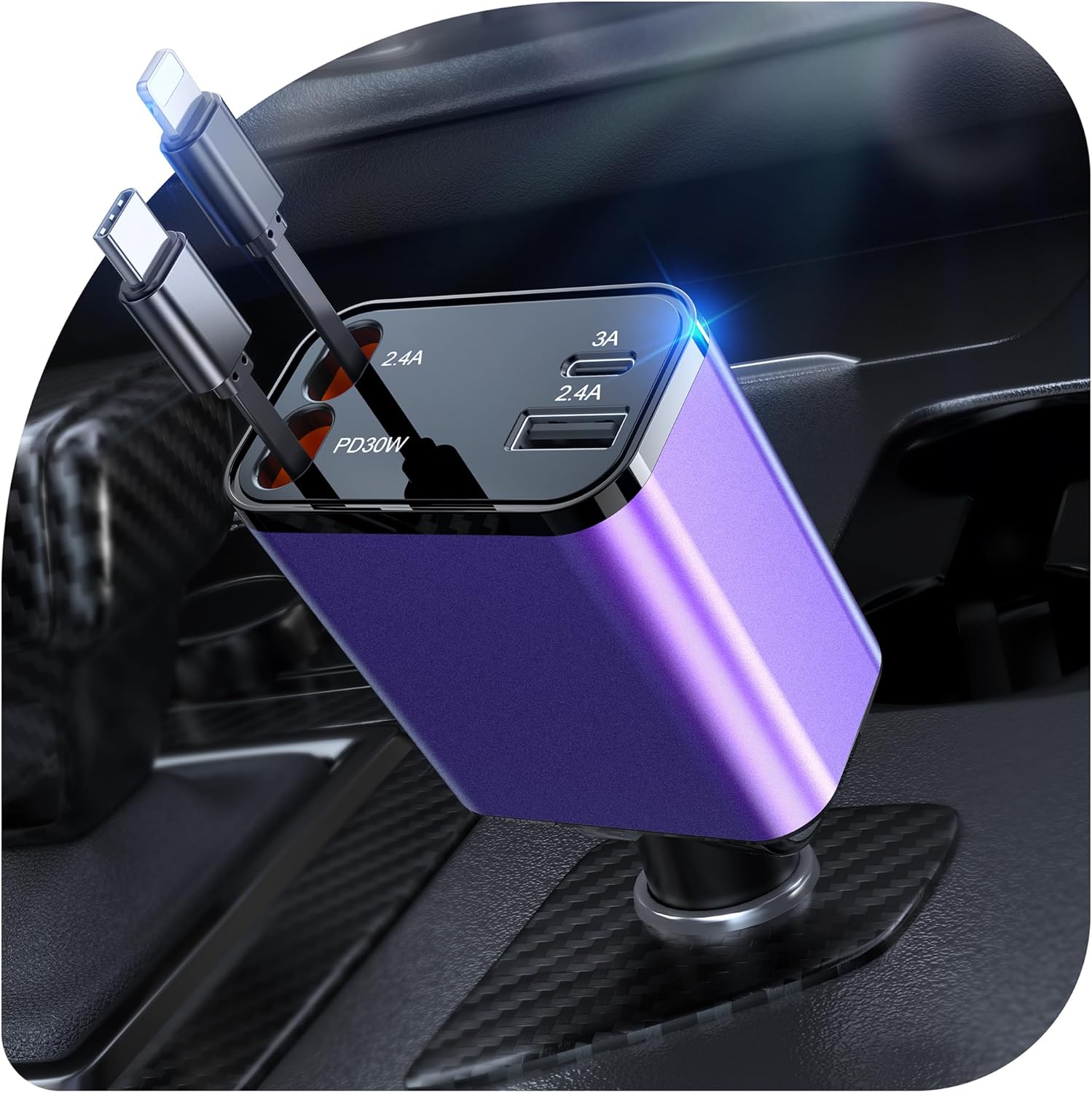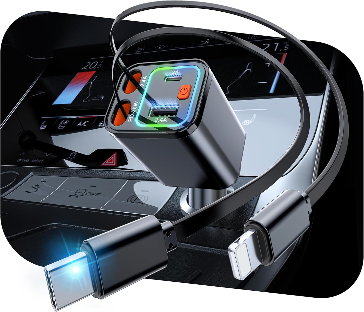 A4: [2025 Compact] 3 in 1 Retractable Car Charger