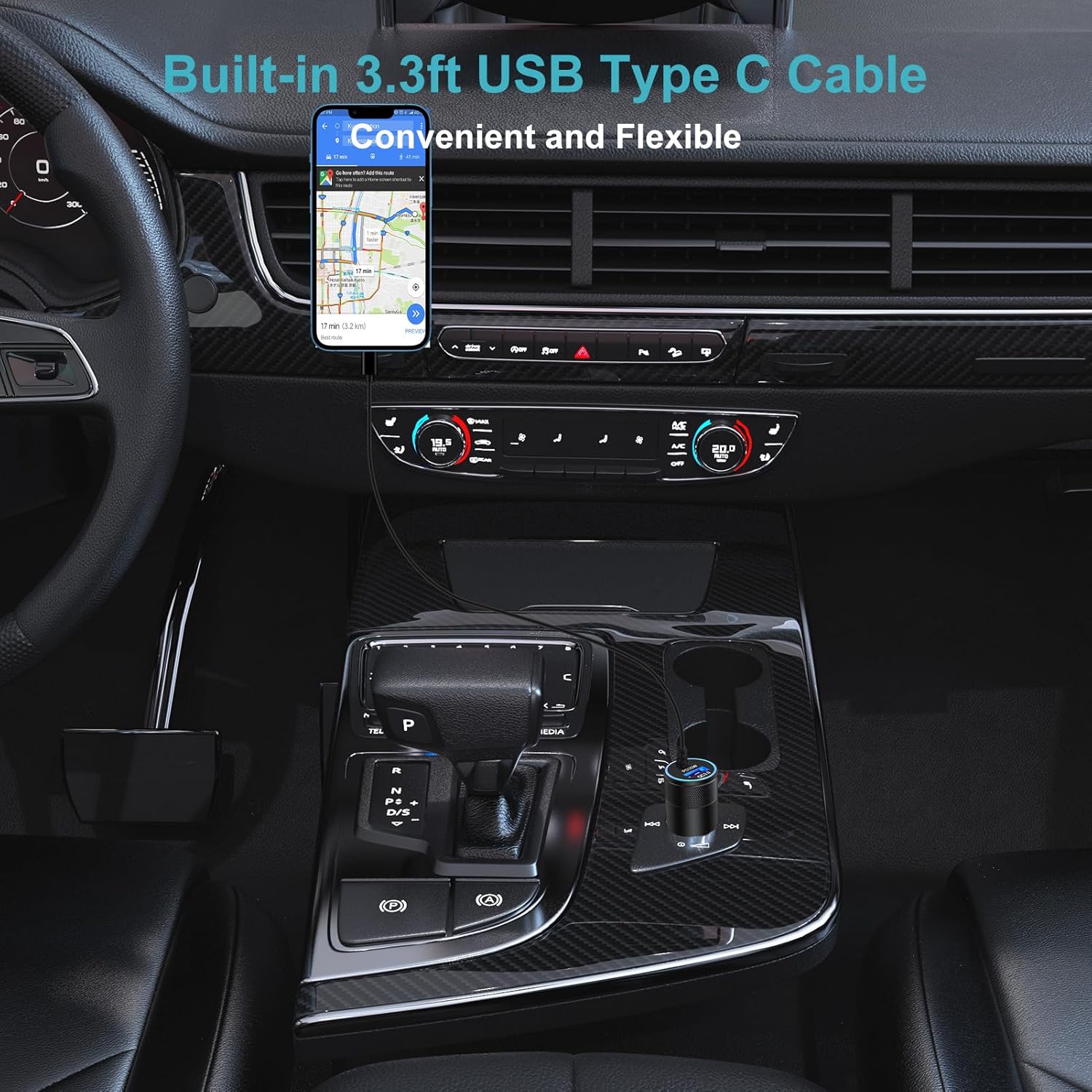 Get rid of other large retractable car charger blocking the car gears and no longer need to worry about loose cable or low battery on the road.