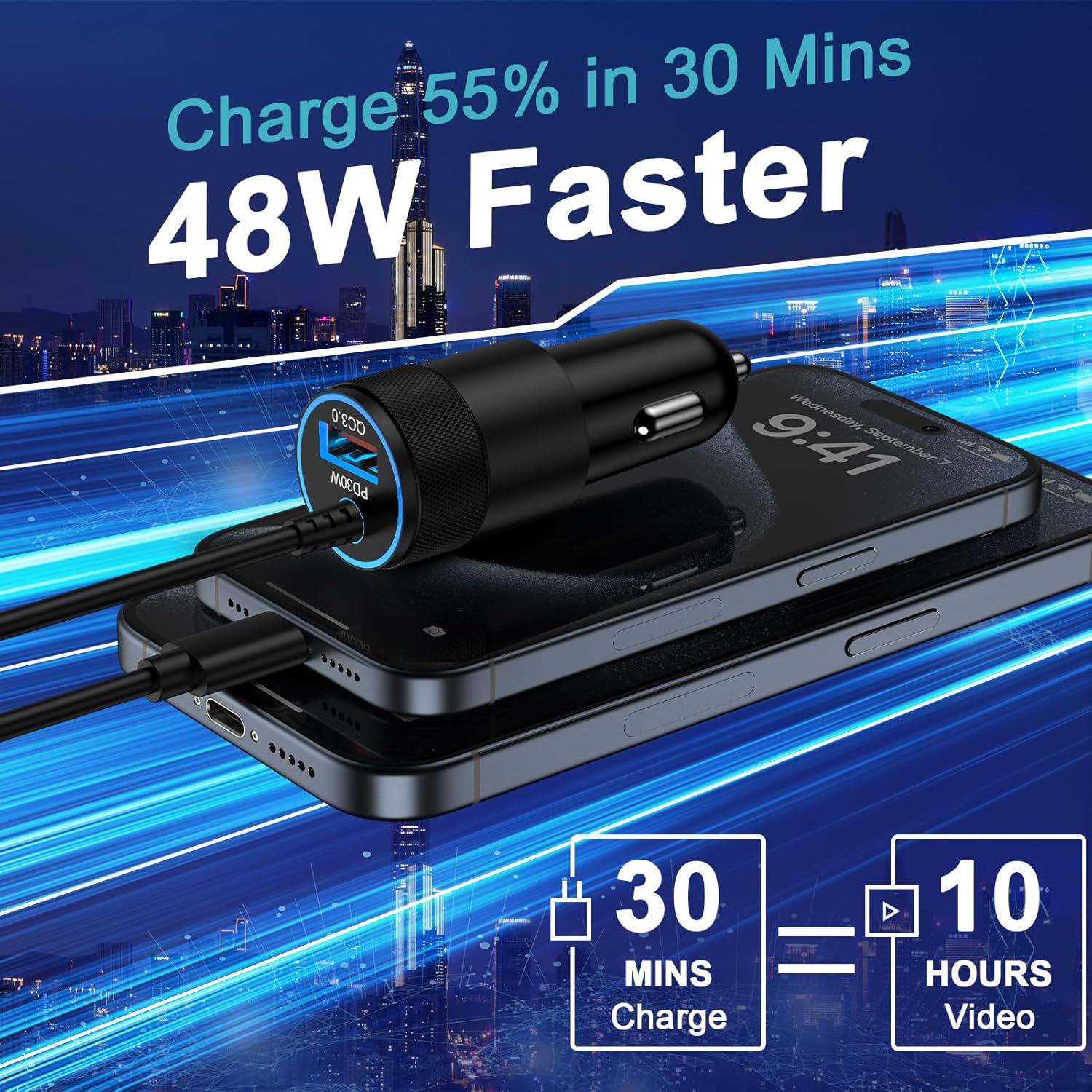 2025 NEWEST UPGRADED 36W SUPER FAST BUILT-IN COIED CABLE